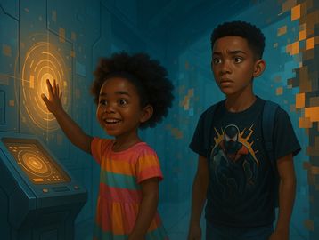 Jax and Zoey are trying to escape a corrupted sector of Glitch City. They reach a locked digital door that flickers with four strange symbols:
