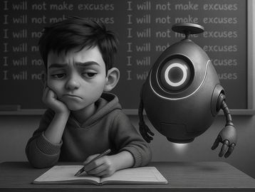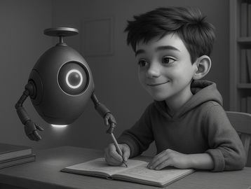 Max groans at his worksheet. “EDITH, help!