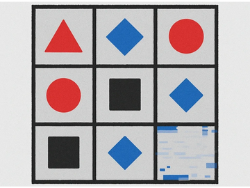 Jax realizes the door opens only if they can identify which symbol should fill the missing tile to complete the pattern.
